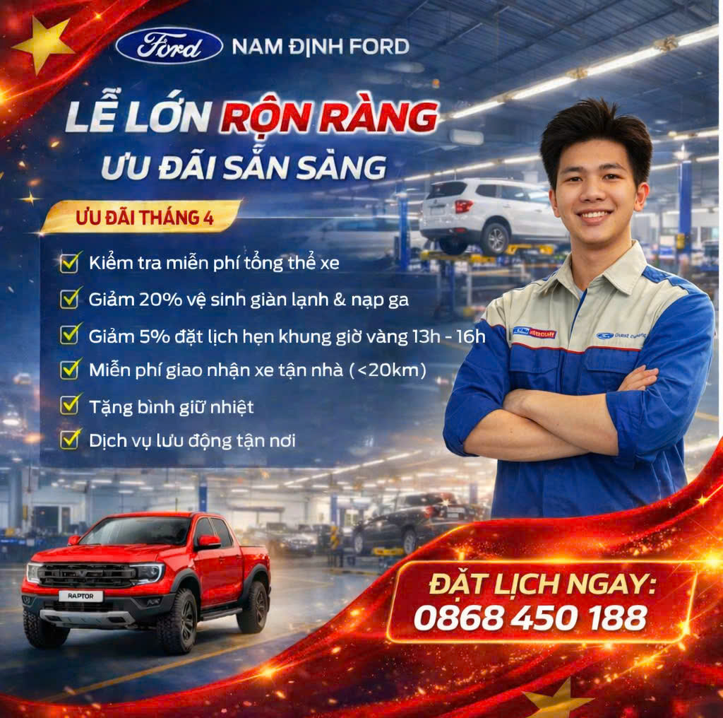 Ưu Đãi Dịch Vụ Ford Mừng Đại lễ 30/4 – Chăm Xe Chuẩn Ford, An Tâm Vi Vu Cùng Nam Định Ford